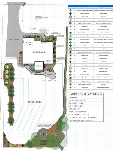 Factoring in sun, shade, slope and water requirements allows us to be able to make professional suggestions as to what plants will be most likely to thrive in the environment. Each plan is unique and completely customized to the clients individual preferences and site requirements.